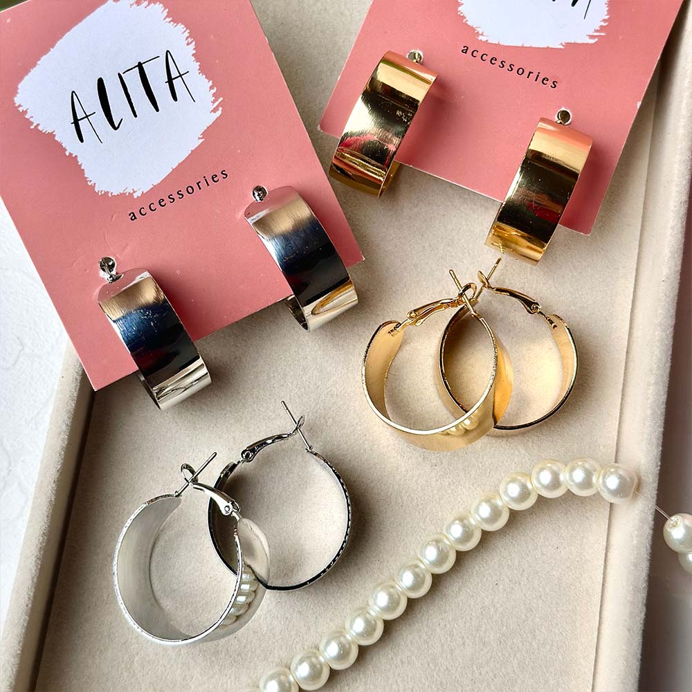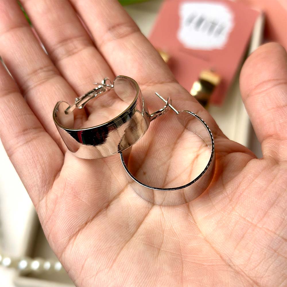 • Alloy based hoops in gold and silver color plating. These beauties are an essential in your wardrobe.